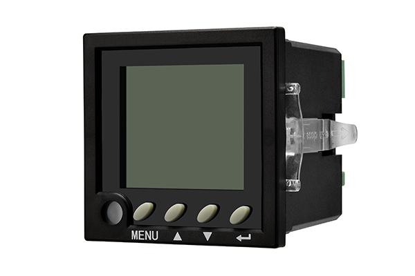 开孔尺寸:68*68mm,面板尺寸:72*72mm,LCD显示,三相电流、电压、电度、功率、功率因数、频率、带1路RS485通讯,2路开关量输入