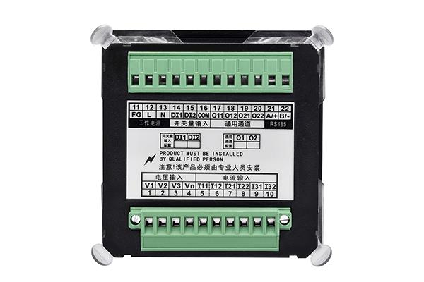 开孔尺寸:85*85mm,面板尺寸:96*96mm,三相电流、电压、电度、功率、功率因数、频率,带1路RS485通讯,2路开关量输入,1路模拟量输出